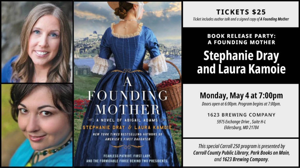 May 4, 7:00 PM – Special Early Launch Event! A Toast to A Founding Mother, Park Books in cooperation with Carroll County Public Library and 1623 Brewing, at 1623 Brewing, Eldersburg, MD – Get tickets here